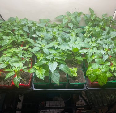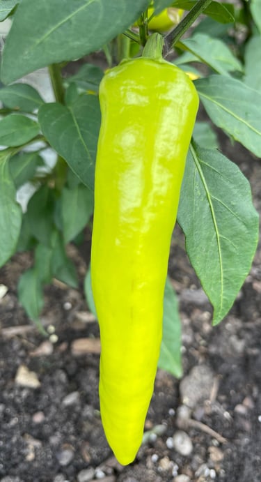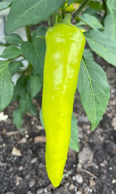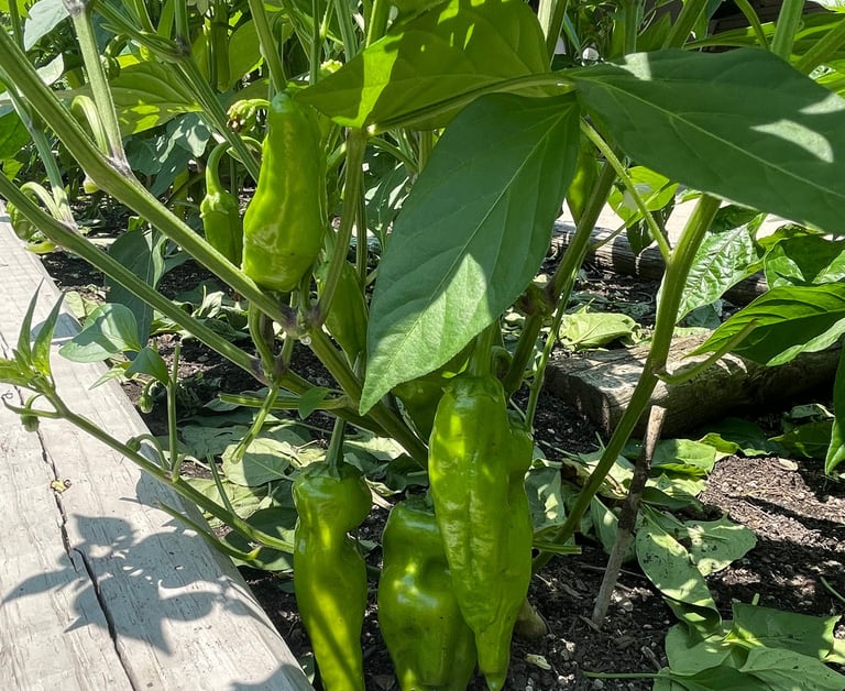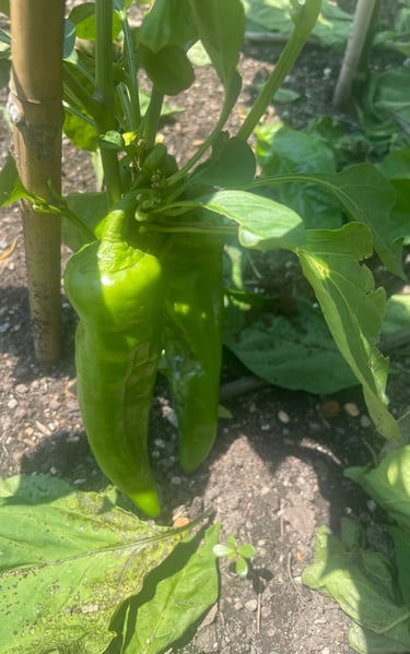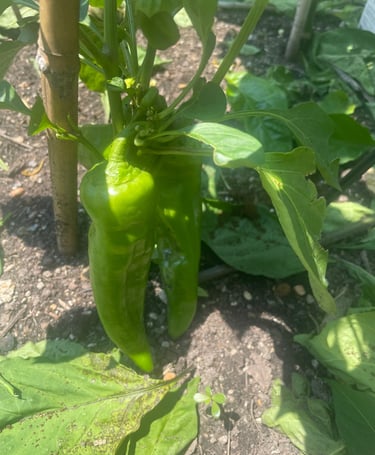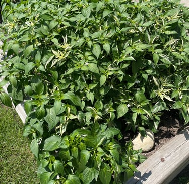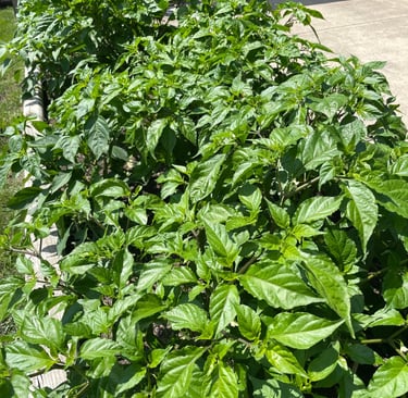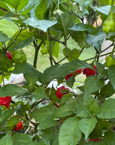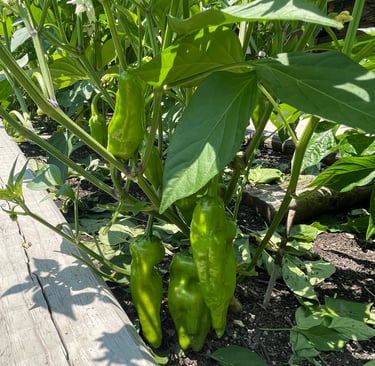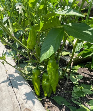 The garden has expanded from a few pots to just over 50 square feet. We plan to grow and harvest 12 varieties this year, ranging from a sweet yellow one (We don't know the name and received the seeds from a friend who doesn't know either.) all the way through the blazing Carolina Reaper.