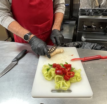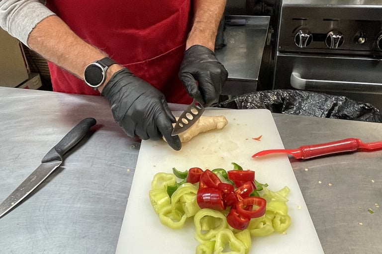 We harvest our home-grown peppers, buy spices and fresh vegetables, rent space in a shared commercial kitchen, and invent all of our own recipes. Every one has been tested by an outside lab to ensure it exceeds FDA requirements, and we carefully test each batch to ensure that our efforts are always in compliance.