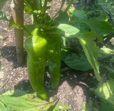 The garden has expanded from a few pots to just over 50 square feet. We plan to grow and harvest 12 varieties this year, ranging from a sweet yellow one (We don't know the name and received the seeds from a friend who doesn't know either.) all the way through the blazing Carolina Reaper.